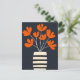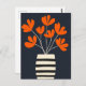 Une couronne florale tangerine luxuriante dans un vase rayé de marine attire l'attention sur un fond bleu ciel calme.