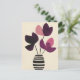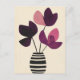 De riches pétales de prune s'élèvent dans un vase à rayures crème avec des contours épais sur un délicat arrière - plan en mousseline jaune, doux mais graphique.