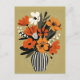 Des fleurs de mandarine, terreuses mais vibrantes, aux rayures vert olive sont soigneusement présentées sur un socle blanc cool.