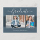 Belle 2 cartes postales faire-part de graduation photo. Doté d'un texte moderne avec un script de calligraphie élégant en gris clair sur des tons de bleu poussiéreux. Pour voir d'autres articles comme celui-ci, visitez mon magasin ici à "www.Zazzle.com/LakeViewCardCo". Merci