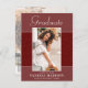 Belle 2 photo, cartes postales faire-part de remise de diplômes. Doté d'un texte moderne et d'un script élégant. La photo des finissants est bordée d'une bordure blanche et d'une garniture ondulée décorative. Le design est complété par un arrière - plan dans les tons rouge et terre cuite. Le dos de la carte offre un espace de texte personnalisé pour ce diplômé spécial et une photo de deuxième année sous une couche de brume douce créant un décor chic. La carte parfaite pour partager cette occasion spéciale.
