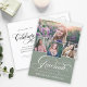 Une invitation moderne de graduation avec le mot "diplômé" sur le devant dans la calligraphie stylisée, plus 4 de vos photos senior préférées. Ajoutez vos propres détails de célébration personnelle à l'arrière. C'est la version verte sage.