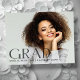 Cartes postales modernes et audacieuses de graduation "Photo", avec éléments design de sombres transparents, style de mode moderne lisant "GRAD", avec typographie minimaliste. La photo du diplômé sur le devant de la carte met en évidence toute la surface. Le dos de la carte offre des espaces de texte personnalisés pour des informations sur votre graduation et votre futur voyage. Idéal pour les personnes âgées du secondaire, du collège et de l'université.