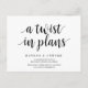 Il s'agit de la moderne minimaliste simple design thème, en caractères noirs, invitation de mariage reprogrammée (reportée / report) carte postale (une torsion dans les plans). C'est la façon parfaite et élégante de faire le faire-part reprogrammé à vos amis et votre famille.