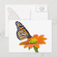 Une image d'un papillon monarque se nourrissant d'une fleur de tithonia orange vif est présentée sur cette carte postale colorée.