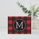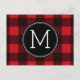 Carte Postale Monogramme de Motif de Buffle Noir Rouge Rustique