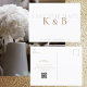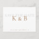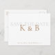 Monogramme simple blanc enregistrer la date. Carte postale. Texte or et gris.