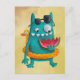 Monstre de plage avec pastèque. Monstre d'été mangeant de la pastèque fraîche! C'est sain et rafraîchissant ! La pastèque est un fruit d'été parfait. Illustration du mignon monstre par Madame Colonelle.