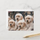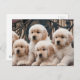 Cinq doux chiots Golden Retriever assis sur un banc. Un chiot en haut, un chiot en bas, répétez !