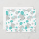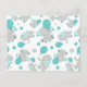 Carte Postale Motif d'éléphants, éléphants mignons - Gris bleu