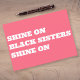 Cette carte postale afro-américaine (femmes noires) a "Shine on, black sisters, shine on" écrit en blanc sur un arrière - plan rose. Ce message de santé mentale positif et stimulant s'adresse aux femmes et aux filles noires. C'est un message encourageant et inspirant à envoyer à ses proches.