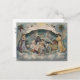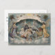 Cette magnifique carte de Noël présente une belle illustration de scène religieuse vintage avec Marie, Joseph, le bébé Jésus et une multitude d'anges et de chérubins dans un décor brumeux.