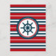 Design nautique avec décoration de voilier en forme ronde sur rouge, bleu et blanc rayé arrière - plan