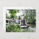 Un dessin artistique d'un homme qui dirige son bateau étroit le long du canal. Les bateaux à canaux, connus au Royaume-Uni sous le nom de bateaux étroits, étaient à l'origine utilisés pour transporter des marchandises à travers le pays. Ils sont maintenant utilisés principalement pour les loisirs et attirent des gens du monde entier pour profiter de notre campagne rurale. Ces bateaux sont très jolis avec leurs cabines aux couleurs vives, traditionnellement bleu, rouge ou vert. Des fleurs et des dessins de château ornent également les bateaux plus traditionnels.
