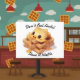 Une mignonne gaufre de dessin animé avec une poêle de beurre dit, "Ne vous sentez pas malheureux, ayez une gaufre". Les gaufres vous repousseront, surtout celles qui sourient.