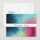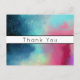Carte de remerciement avec un design abstrait cool et stylé. Les aquarelles se mélangent pour créer l'illusion d'une image de l'espace. Vert avec des tourbillons de violet, de jaune et de rouge clair se mélangent avec une pincée de points blancs et d'étoiles. Une création artistique élégante.