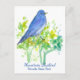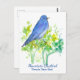 Carte postale d'un oiseau bleu de montagne perché sur un plante de sagebrush dessiné à l'encre sépia et peint à l'aquarelle. L'oeuvre est inspirée par l'oiseau du Nevada State et la fleur du Nevada State.