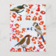 Carte Postale Noël doré Hiver Oiseaux Houx Baies Branches