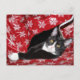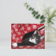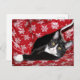 Le chat kitty en tuxedo noir et blanc se met à l'aise dans le papier d'emballage de Noël avec carte postale typique amoureux des chats de cattitude