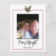 La Carte postale de Noël Holly Branch Holiday est un moyen festif et personnel de répandre la joie des fêtes. Avec un thème de vacances classique avec des branches saintes vibrantes encadrant votre photo, ajoutant une touche intemporelle et festive. Montrez une photo spéciale de famille ou individuelle, créant un accueil de vacances personnel. Il a deux éléments de Noël photo et super douce branche Holly au-dessus de la photo. Customisez facilement la carte postale de Noël avec vos détails qui sont visibles immédiatement à l'écran. Après cela, vous pouvez simplement terminer l'achat. Cette carte postale est parfaite pour envoyer un accueil chaleureux et inoubliable que la famille et les amis aimeront cette période de vacances.