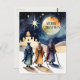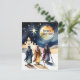 Les Trois Rois Chrétiens Religieux Joyeux Noël de Noël saluant carte postale. Les Mages d'Orient marchent à travers une nuit désertique en suivant l'Étoile de Bethléem vers le lieu de naissance de Jésus. Une illustration de style aquarelle qui évoque la raison de la saison, la nativité du Christ. Le verso est vide pour ajouter un message personnalisé.