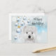 West Highland Terrier, ou Westie, chien dans une carte postale arrière - plan de Noël bleu
