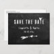 Mariage en damier rustique sur mesure enregistrer les cartes postales datées avec les détails du mariage, coeur et flèche sur un arrière - plan en damier noir.