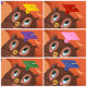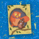 L'élève fier porte un capuchon de graduation et détient un certificat d'achèvement sous l'aile. La petite chouette brune est félicitée par un professeur brûlé orangé. Illustration originale de l'artiste Noël Snow.
