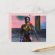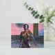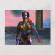 Beauté tatouée noire avec élégante bijouterie dorée avec son perroquet rouge coloré, sous le ciel cosmique rose avec planètes bleues.Cadre d'animation artistique de Hyperion World 3d animation sci-fi long film.
