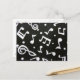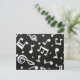 Un arrière - plan noir profond aux notes musicales fluides recouvre cette carte à la mode avec bijoux et cravate masculine assortis.