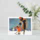 Une mère et un enfant vintages nourrissent des oiseaux dans la neige