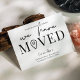 Laissez vos clients, employés et fournisseurs de livraison connaître votre nouvelle adresse de bureau avec cette carte postale minimaliste Nous avons déménagé pour affaires design. Avec un design noir et blanc avec des polices à la mode, de l'espace pour votre nom d'entreprise, une nouvelle adresse, des coordonnées et des heures d'ouverture, cette carte postale moderne que nous avons déplacée est un moyen facile de mettre à jour les clients et les fournisseurs au sujet de votre changement d'adresse.