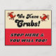 Reproduction d'un panneau de bord de route rétros hilarant : We Have Crabs - Stop Here & You Will Too! Que vous vous souveniez des originaux ou que vous soyez en train de recevoir votre première bouchée, ces produits "We Have Crabs" sont des cadeaux fantastiques pour toute personne ayant un sens de l'humour. Assurez-vous de regarder mes autres articles "We have Crabs" (aimant, cartes de voeux, T-shirt, mug, mousepad, etc.).