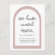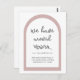 Faire-part mobile simple et chic avec script moderne "we have move", une branche botanique d'aquarelle assez grise, arche rose tendance, et de nouvelles informations d'adresse.
