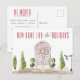 Nouvelle Maison Pour Les Vacances. Jolie porte illustrée, couronne, arc, arbres et lampe de rue, faire-part mobile carte postale. La carte comporte plusieurs lignes de texte modèle pour votre nouvelle adresse et votre message de vacances.
