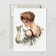 La jeune femme élégante utilise une robe de soirée, de longs gants et un diadème. De petits verres d'opéra sont tenus avant qu'elle pendant qu'elle jette un coup d'oeil de retour.