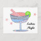 Une boisson rose fruitée dans un verre bleu ombragé. Une paille tourbillonnant rose et un coin de chaux l'accentuent. Les mots "nuit dames" peuvent être changés à votre gré.