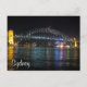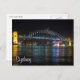 Le pont du port de Sydney la nuit. Carte postale entièrement personnalisable. Le Sydney Harbour Bridge est un pont en arc traversant le port de Sydney qui transporte le trafic ferroviaire, automobile, cycliste et piéton entre le quartier central des affaires de Sydney (CBD) et la rive nord. La vue spectaculaire sur le pont, le port et l'opéra de Sydney voisin est une image emblématique de Sydney et d'Australie. Le pont est localement surnommé "Le cintre" en raison de son architecture en arc.