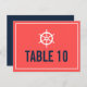 Marine et corail Casque nautique Numéro de tableau Carte postale carte de remerciements bleu marine foncé et corail avec une illustration de barre blanche. C'est parfait pour les mariages nautiques ou les mariages à thème mer et océan. com