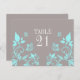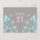 Papillon sucré et dainty Floral Numéro de table Carte postale avec un arrière - plan gris poussiéreux et muet papillons turquoise et ornements floraux de la vigne. Cette élégante carte de table de mariage est le choix idéal pour un mariage moderne et chic. Facile à customiser, il suffit d'ajouter le ou les numéros de table appropriés dans le champ de texte fourni. Cliquez sur le bouton "Customiser" pour trouver d'autres options de personnalisation.