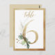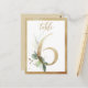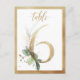 Belle carte de numéro de table avec un motif botanique - une aquarelle illustrant le feuillage verdoyant et les numéros d'effet doré. Tableau 6. Veuillez vérifier tous les numéros disponibles