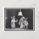 Cette carte postale est la reproduction d'une photo vintage bizarre en noir et blanc montrant un mariage de chat avec les animaux habillés comme des humains.