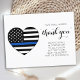Ligne Bleue Mince - Drapeau américain dans les couleurs Police Drapeau, design moderne noir bleu sur blanc. Remerciez un policier ou un agent d'application de la loi exceptionnel de cette mince ligne bleue, parfait pour l'appréciation de la police, des policiers et des services de police. Citation "Deux petits mots Merci semblent si petits par rapport à tout ce que vous faites, mais ils viennent de la partie la plus profonde de nos coeurs." DROIT D'AUTEUR © 2020 Judy Burrows, Black Dog Art - Tous droits réservés. Carte postale du Merci de l'application de la loi cardiaque de l'officier de police