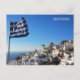 Carte postale avec le drapeau grec sur le village d'Oia, île de Santorini dans Cycladese