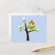 Carte Postale Oiseau de Chouette Carton vert neige mignon