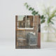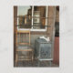 Photo d'un porche de magasin dans une ancienne carte postale de l'ouest de la ville. Cartes postales vintages du vieux ouest. Poêle et chaise devant la fenêtre du magasin.