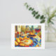 Un cadre extérieur animé présente sur une assiette bleue un repas d'omelette, d'oeufs frits et de pommes de terre, accompagné d'un verre de vin rouge et d'une assiette latérale d'autres coins. La table contient également des condiments comme du sel, du poivre et un petit pot, probablement contenant des épices ou des condiments ; une rue ensoleillée et résidentielle sert de toile de fond à cette scène de repas en plein air. Art créé par Arlene avec Dall-e-3 et Photoshop.