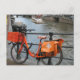 Carte postale Orange Bicycle. Un vélo Oranje (Orange) Parking sur un pont d'Amsterdam sur les canaux avec un bateau à canal flottant dans l'eau et d'autres ponts dans la Pays-Bas/Hollande. Entièrement personnalisable ! Personnalisez et ajoutez plus de texte et d'images si vous voulez!