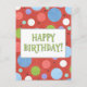 Cercles de bleu, orange, vert et blanc sur un arrière - plan orange. Idéal pour les entreprises qui souhaitent un joyeux anniversaire à leurs clients. Personnalisez-vous avec votre propre message au dos ou laissez vide pour une note manuscrite.
