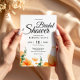 Introduction de l'élégant sauvage exquis Orange exquis Floral wedding Bridal Shower invitations ! Celebrate love and beauty this enchanting postcard. Toujours yourself in a captivating blend of vibrant orange hues and delicate wildflowers, creating a stunning visual feast. Join us as we honor [bride's name] and indulge in unforgettable celebration. Mark your calendars for [date] at [time] at (date). Don't miss the chance to shower the bride-to-be with heartfelt wishes and create cherished memories RSVP now to secure your spot at this elegant affair. Get ready to be swept away by the beauty of this extraordinary bridal shower !